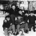 Braća Latinović (desni je mlađi Siniša, išli smo skupa u školu) i u sredini Mićo Belić, možda njegova majka iza njih. Na sankama X i Miloš Mančić.