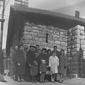 Omčigus (lijevo bez kape), Čolović, Petojević, Nikolić, Belić, u bijelom kaputu možda Milan Zoričić, ...