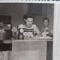 Mašinu za šivanje moralla je imati svaka žene onog vremena. Obratite pažnju na radio, heklani stoljnjak, šivane navlake za tapecirane stolice, vazu s plastičnim cvijećem....Dok mama šije, kćer uči vesti i koliko se sjećam, nije joj baš išlo najbolje