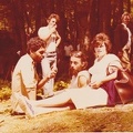 Proslava otvaranja doma u Brezovcu i postavljanja spomen ploce borcima NOB-e. -Djuro Cvijanovic, Peky, Djuka drzala "Rio bar", iza su Bosko Ceko i Vasiljevic. Vasiljevica sam sretao kako biciklom ide u Brezovac a nisam siguran da li je izlazio i na vrh Dinare sa biciklom?