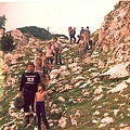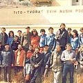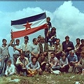 Bašta doma JNA. Primopredaja planinarske štafete. Štafeta je dosla iz Bosne mi smo je odnijeli na vrh Dinare i poslije predali Splićanima, koliko se ja sjećam. Od kninskih planinara tu su Petar Bukarica (sa štafetom), Željko Novaković, Željko Šućur i Stipe Čulina. Ostali su planinari iz Bosne, Splita, članovi doma JNA i novinari.