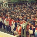 Eno nastavnika Blitve, lijevo, u dubini, do vojnika, a iza čovjeka u odijelu, bez kravate. Djeca se smaraju čekajući.